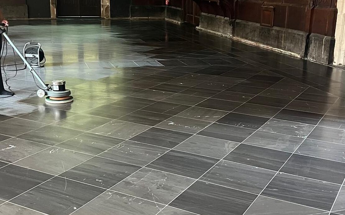 The floor of the ground floor was first thoroughly cleaned with Lithofin MN Power-Clean and then impregnated with Lithofin Stainstop PLUS.