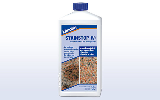 Protecting the surface with Lithofin STAINSTOP >W< will prevent water, dirt, oil and grease from penetrating into the surface, thereby simplifying maintenance.