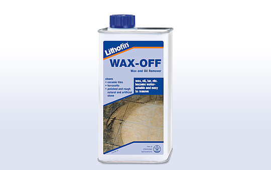 Apply Lithofin WAX-OFF undiluted and allow it to work for 5-10 minutes. Add some water, brush, and then remove the product. Rinse thoroughly with clear water. You may have to repeat this procedure.