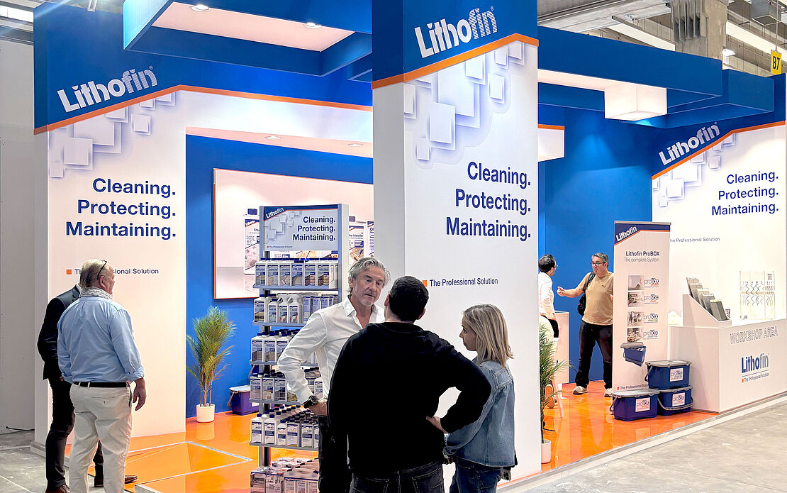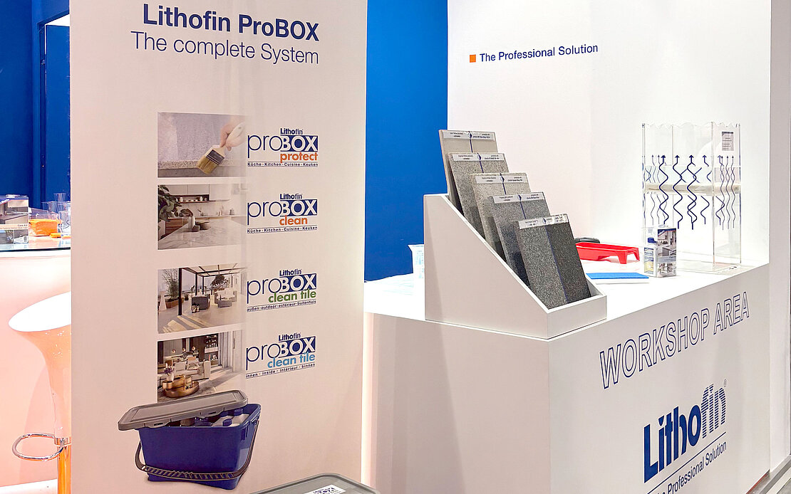 Im Focus stand das Lithofin System zum Reinigen, Schützen und Pflegen, das mit den vier verschiedenen Lithofin ProBoxen die ideale Lösung für jeden Verarbeiter bietet.