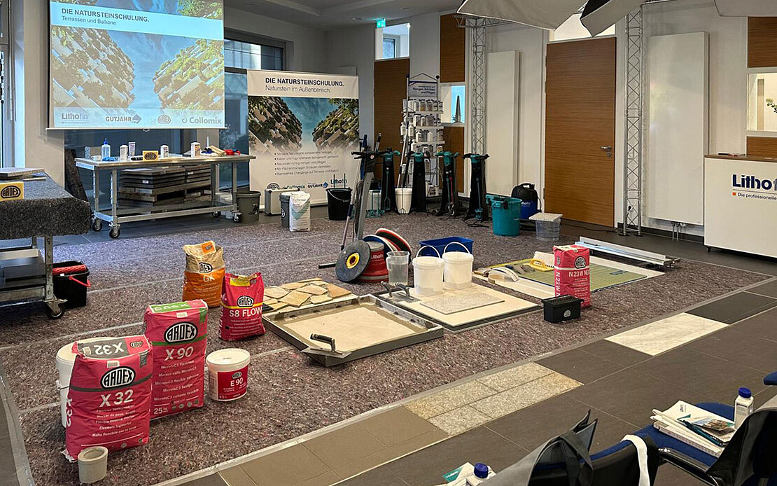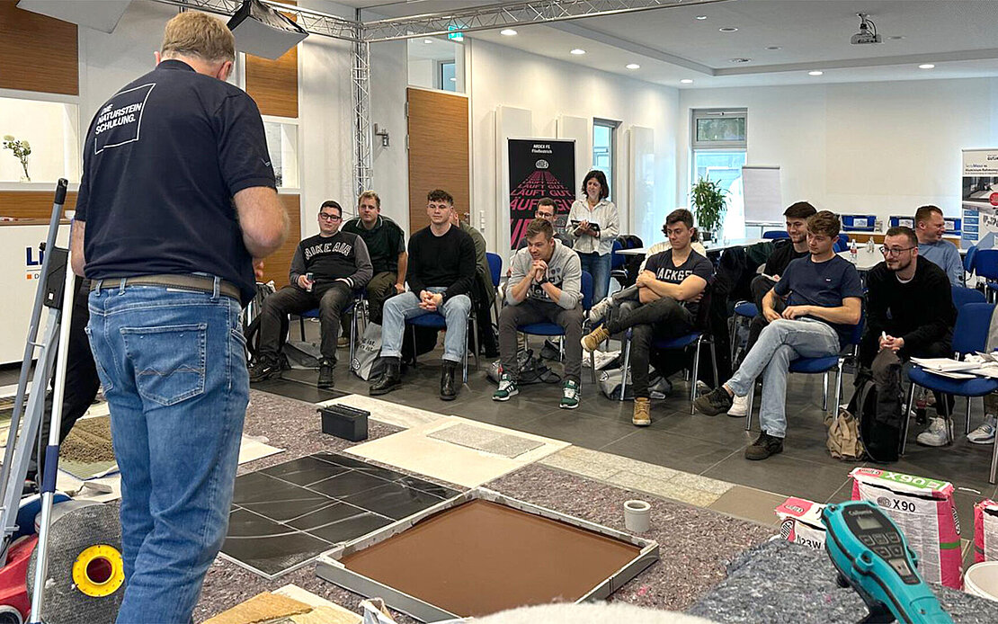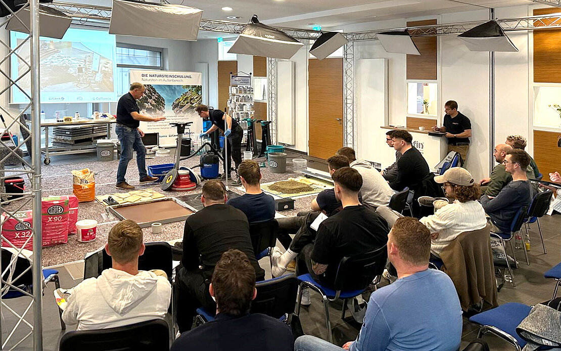 Im Rahmen dieses eintägigen Seminars wurden unter anderem die Themen Natursteinkunde, barrierefreie Terrassen, Abdichten und der Einbau von Drainagesystemen, das Anmischen bauchemischer Produkte und das richtige Reinigen, Schützen und Pflegen thematisiert.