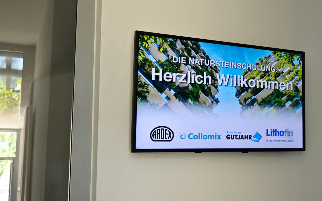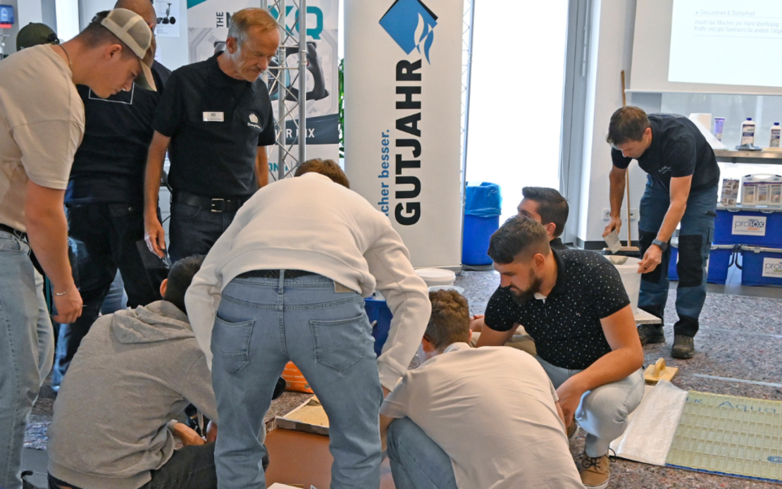 Die angehenden Fliesenlegermeister der Steinbeisschule in Stuttgart waren am 19. September zu Besuch in Wendlingen. In Kooperation mit den Firmen ARDEX, Gutjahr und Collomix fand die Veranstaltung „Die Natursteinschulung“ statt.