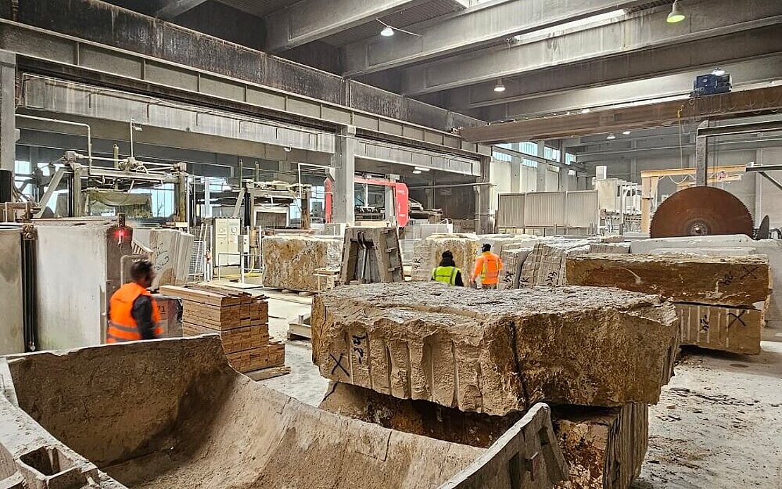 Der erste Tag startete mit einer exklusiven Führung durch den Steinbruch Franken-Schotter in Titting-Petersbuch, wo die Teilnehmenden den Entstehungsprozess vom Felsen bis zum gegatterten Steinblock mitverfolgen konnten. Anschließend fand die Schulung statt, welche sich auf theoretische Grundlagen konzentrierte, einschließlich einer Einführung in verschiedene Steinfamilien und deren Besonderheiten. Es wurden Themen wie die schadensfreie Verlegung von sensiblen Natursteinen und das fachgerechte Mischen von Kleber und Fugmaterialien behandelt. Praktische Übungen ermöglichten den Teilnehmern, das Gelernte unmittelbar anzuwenden.