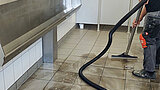 Obwohl die Oberflächen regelmäßig gewischt werden, hat sich im Laufe der Zeit ein Plaque aus Allgemeinverschmutzungen, Kalk und Reinigungsmittelrückständen gebildet. Diese Schicht war mit haushaltsüblichen Mitteln nicht mehr entfernbar.