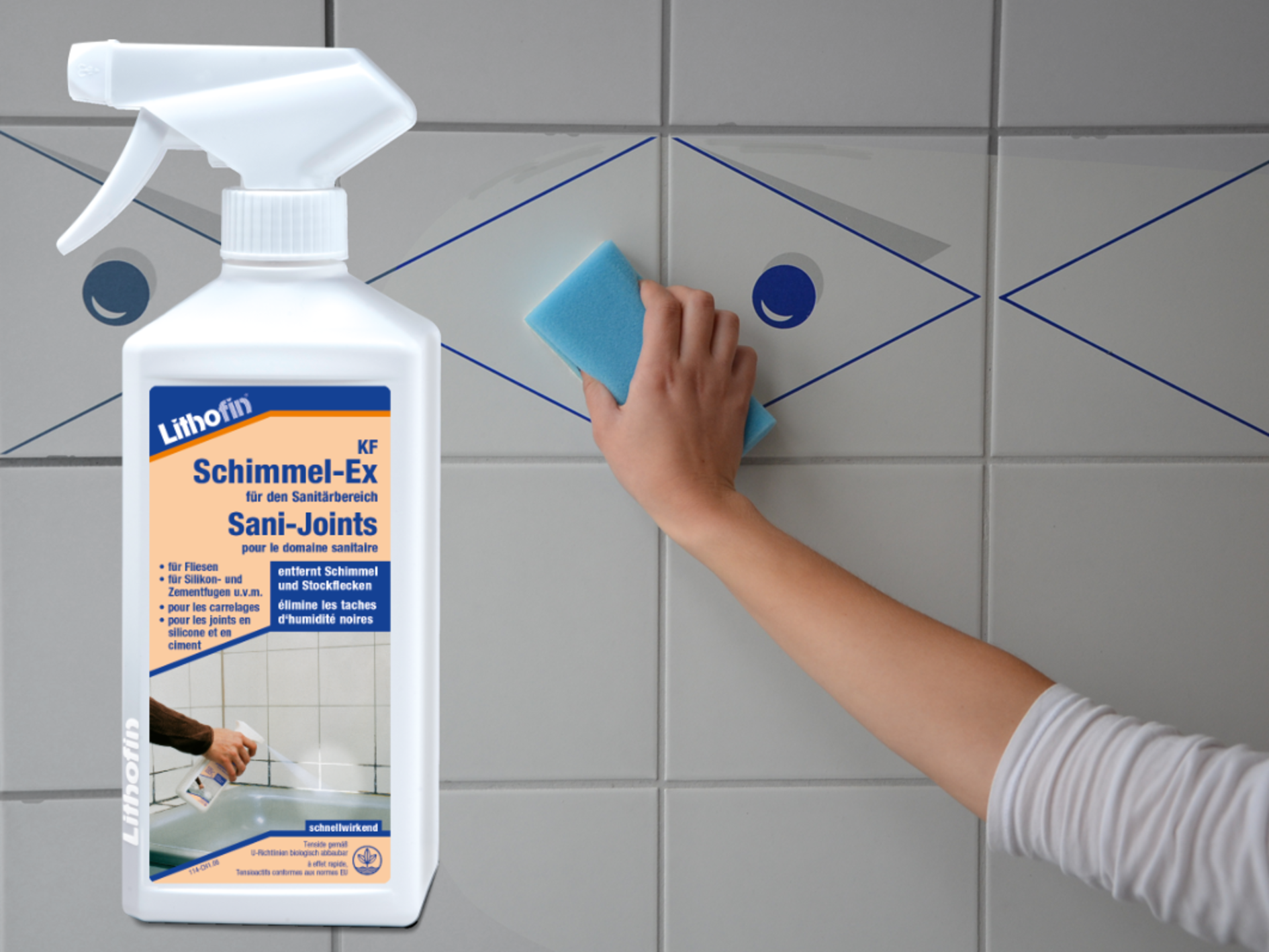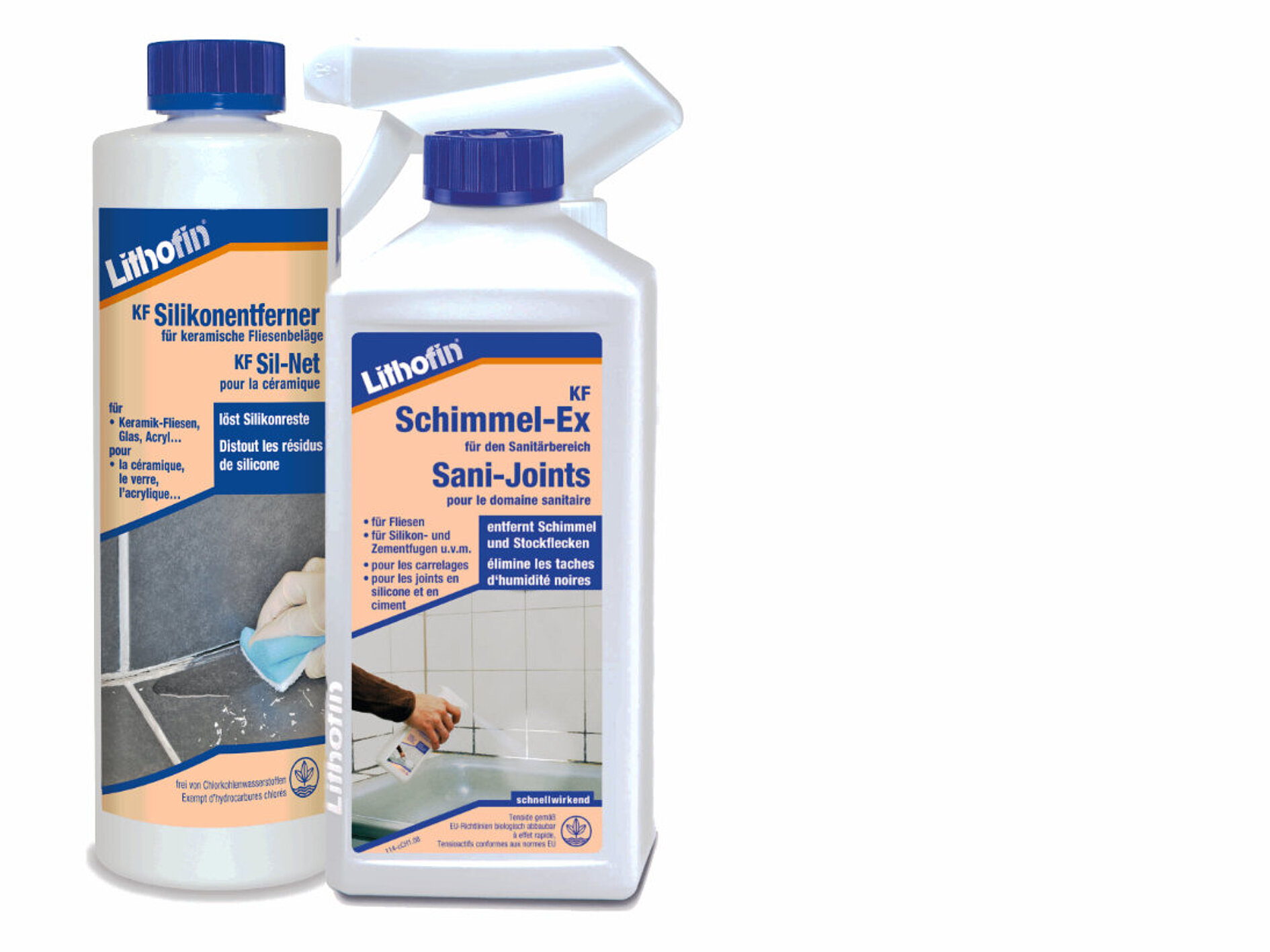 Sie möchten sicher sein, dass Sie Schimmel von Silikonfugen zuverlässig entfernen? Ist der Befall so stark, dass Sie selbst die Fugen entfernen müssen? Dann haben wir für Sie genau das Richtige: das neue Lithofin Reiniger-Set zum Entfernen von Schimmel von Silikonfugen zum vollständigen Entfernen von Silikonfugenresten und dem zuverlässigen Beseitigen von Schimmelsporen auf Ihren wasserbeständigen Oberflächen.