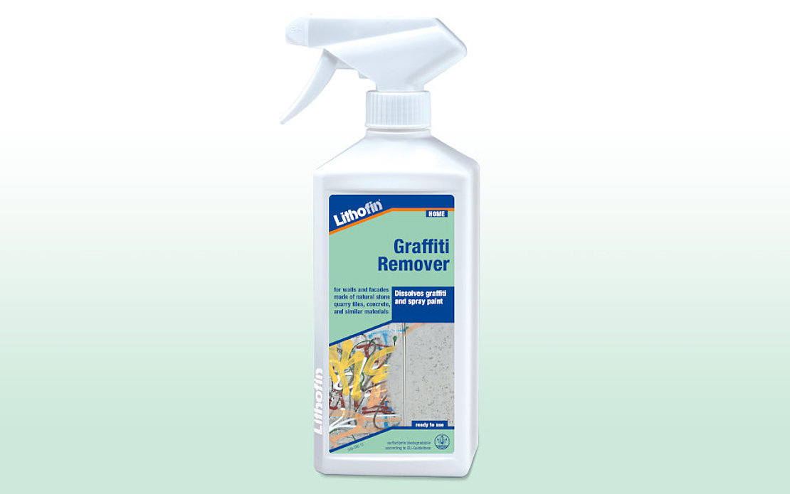 Dissolves spray paint, oil and grease, soot, etc. Suitable for use on natural stone, quarry tiles, concrete, plaster, glass, etc.