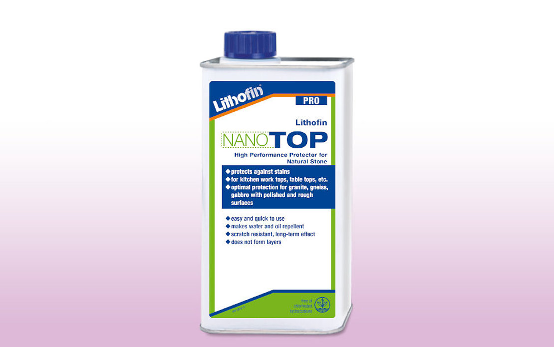 Fast drying impregnator for dark natural stones with polished, honed, brushed and similar surface finishes. Protects kitchen work tops and other small workpieces against water and oil stains. Intensifies the colour without altering the natural structure of the stone.