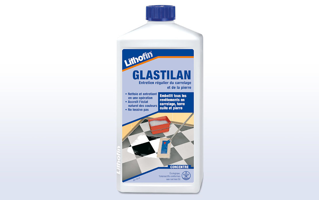 Effectuez d'abord un nettoyage de base. Si la douceur du revêtement de sol est due à des produits d'entretien formant des couches, ce nettoyage suffit à résoudre le problème. Si le sol est encore trop glissant, on peut utiliser du Lithofin Anti-Glisse pour rendre la surface plus antidérapante. Une plus grande rugosité est obtenue en éliminant les plus petites particules de silicate. Lithofin Anti-Glisse est disponible dans un set qui contient tout ce dont vous avez besoin pour une finition antidérapante d'environ 6m².