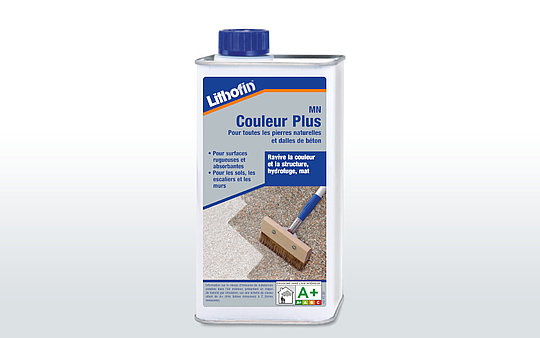 Appliquer le produit à l'aide d'un rouleau ou d'un pinceau et assurer une répartition uniforme de la solution d'imprégnation en l'enduisant plusieurs fois. S'il y a encore de l'humidité sur la surface après environ 5-10 minutes, essuyez-la simplement avec un chiffon sec. Si l'effort semble trop important, c'est-à-dire si une grande surface doit être retravaillée, Lithofin MN Couleur Plus peut être complètement enlevé avec Lithofin LÖSEFIX. Appliquer Lithofin LÖSEFIX au pinceau, laisser agir environ 15-20 min et rincer abondamment à l'eau.