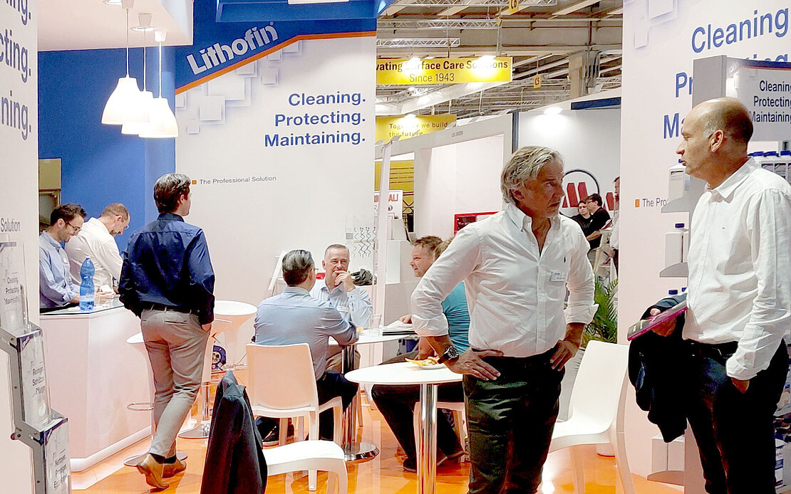 De focus lag op het Lithofin systeem voor reinigen, beschermen en onderhouden, dat met de vier verschillende Lithofin ProBoxen voor elke gebruiker de ideale oplossing biedt.
