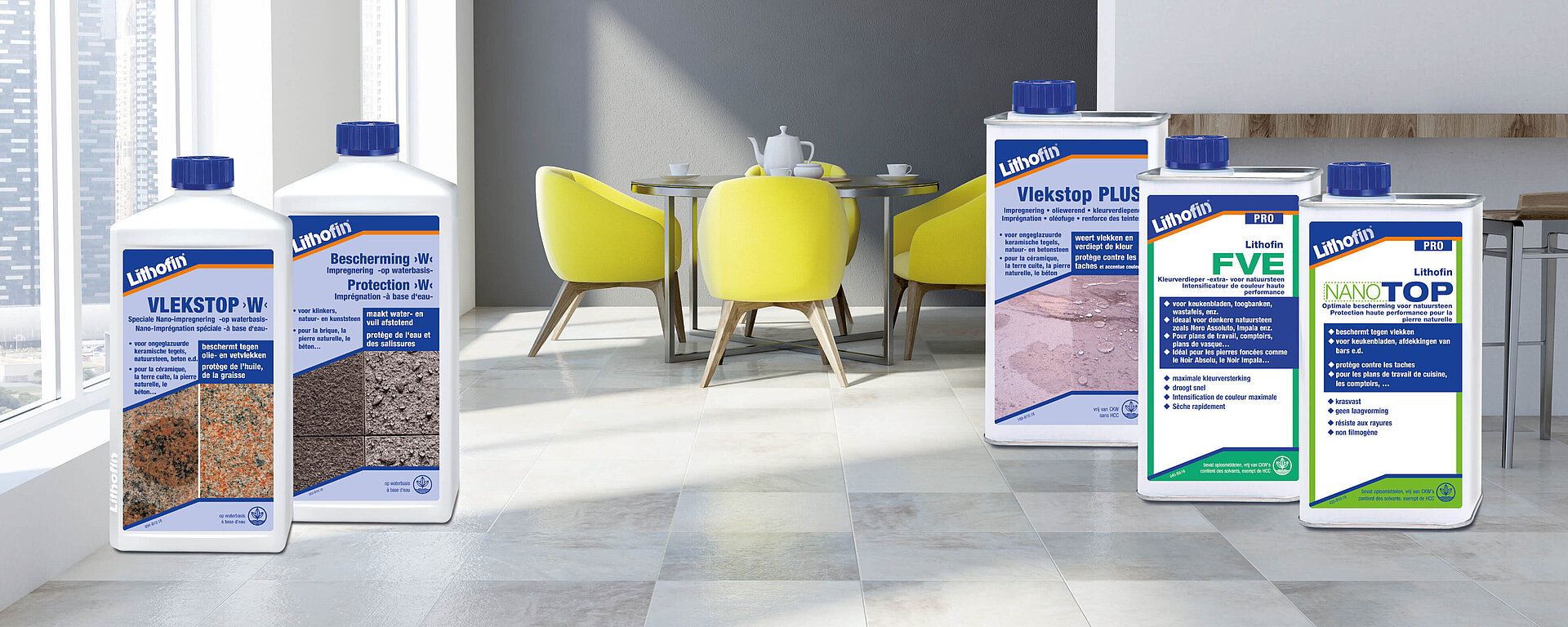Lithofin is gespecialiseerd in de ontwikkeling van hoogwaardige impregneermiddelen. Met voedsel compatibiliteit bevestigd door een onafhankelijk testlaboratorium, zijn Lithofin NanoTOP en Lithofin FVE bijzonder geschikt voor keukenwerkbladen.