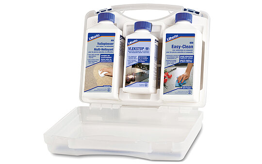 De Lithofin onderhoudsset bevat de nodige producten voor marmer en andere natuurstenen.