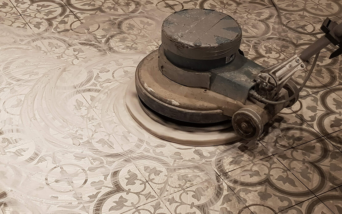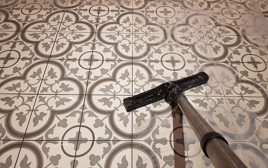 De decoratieve laag van een cementtegel wordt gemaakt van een formule van marmerpoeder, wit cement en kleurpigmenten. Het is dus duidelijk dat het eindproduct op zure vloeistoffen zeer gelijkaardig reageert zoals kalkgebonden natuursteen. "Afzuren" om cementresten te verwijderen is dus uitgesloten.
