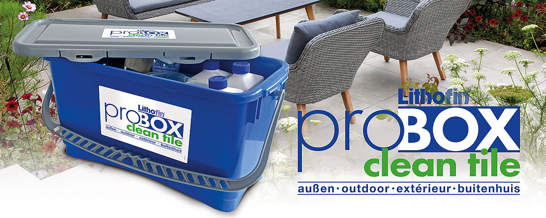 Inhoud van de Lithofin ProBox Clean Tile (buitenshuis):